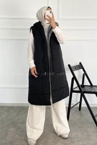 Modalamelif Çift Taraflı Gizli Fermuarlı Kapüşonlu Şişme Yelek Füme