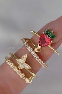 Lamelif Gold 8li Kombin Kelebek Yüzük Seti