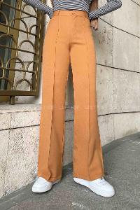Lamelif Çımalı Bol Paça Pantolon Camel