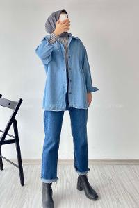 Lamelif Fitilli Tesettür Gömlek Kot Mavisi