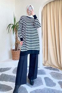 Modalamelif Çizgi Şeritli Salaş Triko Tunik Siyah
