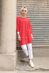 Modalamelif Çizgili Basıc Tunik Kırmızı