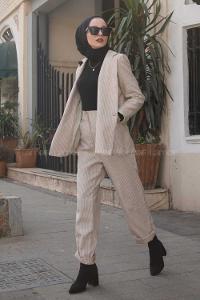 Lamelif Balance Armalı Çımalı İkili Tesettür Takım Camel