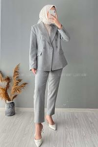 Lamelif Balance Armalı Çımalı İkili Tesettür Takım Gri