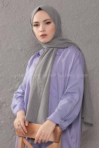 Modalamelif Çizgili Keten Şal Gri