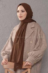 Lamelif G Desen Ayrobin Floş Jakar Şal Kahverengi