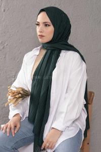Lamelif G Desen Ayrobin Floş Jakar Şal Koyu Yeşil