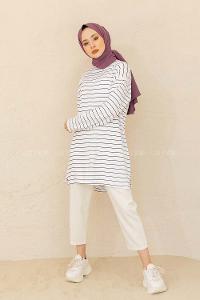 Lamelif Gizli Düğme Detaylı Tesettür Tunik Beyaz