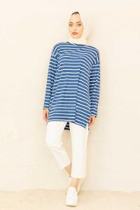 Modalamelif Çizgili Tunik İndigo