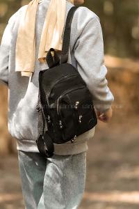 Modalamelif Çok Bölmeli Krınkıl Kumaş Sırt Çantası Siyah