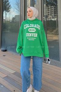 Lamelif Colorado Baskı Detaylı Kapüşonlu Sweatshirt Yeşil
