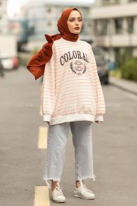 Modalamelif Colorado Yazı Baskılı Çizgi Desenli Sweat Beyaz-Turuncu