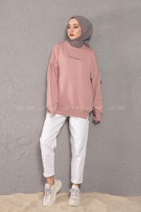 Modalamelif Crab s Yazı Baskılı Sweatshirt Pudra