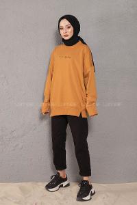 Lamelif Ön Fermuarlı Düz Sweatshirt Camel
