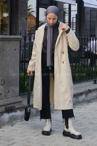 Lamelif Garnili Uzun Trenç Sütlü Kahve