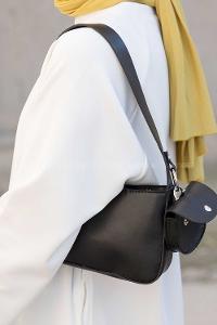 Lamelif Mıknatıslı Fermuar Bölmeli Omuz Çantası Siyah
