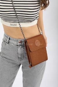 Modalamelif Cüzdan Bölmeli Çapraz Çanta Kahve