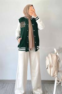 Modalamelif D Nakışlı Sırt Nakış İşlemeli Kolej Ceket Yeşil