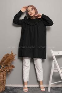 Modalamelif Dantelli Fırfırlı Tunik Siyah