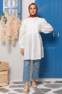 Modalamelif Dantelli Önü Düğmel Tunik Ekru