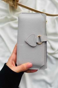 Modalamelif David Polo Büyük Boy İçi Kadife Tokalı Cüzdan Gri