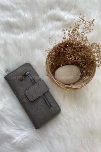 Modalamelif David Polo Büyük Boy Yumuşak Kumaş Çok Bölmeli Cüzdan Gri