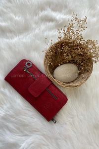 Modalamelif David Polo Büyük Boy Yumuşak Kumaş Çok Bölmeli Cüzdan Kırmızı