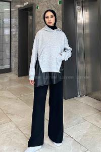 Lamelif Deri Detaylı Sweatshirt Gri