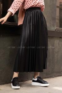 Modalamelif Deri Görünümlü Laklı Etek Siyah