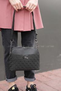 Lamelif Omuz Askılı Deri Görünümlü Kadın Çanta Siyah