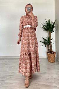 Lamelif Balon Kol Katlı Tesettür Elbise Acı Kahve