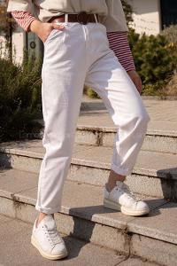 Modalamelif Deri Kemerli Pensli Gabardin Pantolon Beyaz