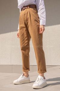 Modalamelif Deri Kemerli Pensli Gabardin Pantolon Taba