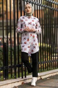 Lamelif Manşeti Biyeli Tunik Beyaz