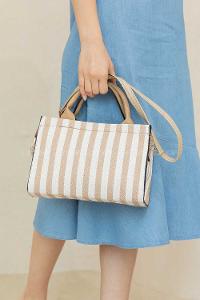 Modalamelif Dik Çizgili Çapraz Çanta Vizonrengi