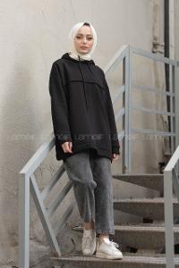 Modalamelif Dikiş Detaylı Kapşonlu Sweatshirt Siyah