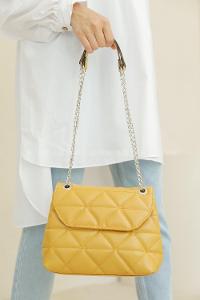 Modalamelif Dikişli Kapitone Çapraz Çanta Hardal Sarısı