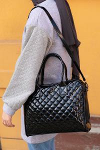 Modalamelif Dikişli Lidya Rugan Çanta Siyah