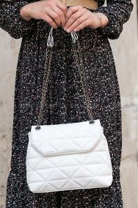 Lamelif Dikişli Pastelya Çapraz Çanta Beyaz