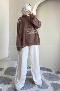 Lamelif Kapüşonlu Salaş Sweatshirt Acı Kahve