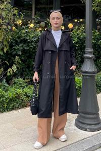 Lamelif Dina Önü Düğmeli Trençkot Siyah