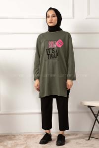 Lamelif Kol Armalı Sweatshirt Haki