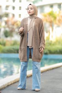 Lamelif Uzun Tesettür Hırka Kahverengi
