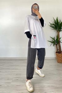 Modalamelif Duble Kol Limited Editıon T-Shirt Beyaz