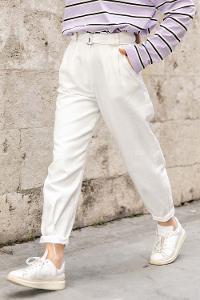 Modalamelif Duble Paça Beli Kemer Detaylı Pantolon Ekru