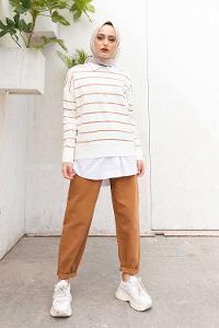 Modalamelif Düşük Kol Çizgili Kazak Ekru Bej