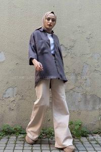 Modalamelif Düşük Kol Oversize Gömlek Antrasit