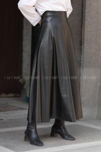 Modalamelif Düz Deri Görünümlü Etek Siyah