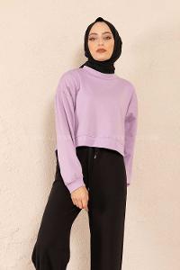 Modalamelif Düz Renk Crop Sweatshirt Lila
