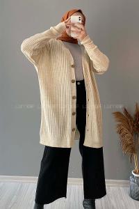Modalamelif Düz Renk Fitilli Hırka Krem